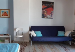 The apartment consists of a living room furnished with a double sofa bed, a dining table, a dresser, 6 chairs and a TV; A fitted kitchen, fridge, sink with drip tray and crockery; A full bath with shower and bidet and a double bedroom.