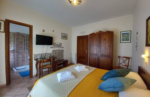 Located in Giardini Naxos, the Girasole room with an external balcony is just a few steps from the beach. The 3-storey property consists of 1 bedroom and 1 bathroom and can therefore accommodate 2 people. Additional amenities include high-speed Wi-Fi (suitable for video calls) with a dedicated workspace for home office, a TV, air conditioning, and a washing machine. This holiday home features a private balcony, ideal for relaxing evenings.
