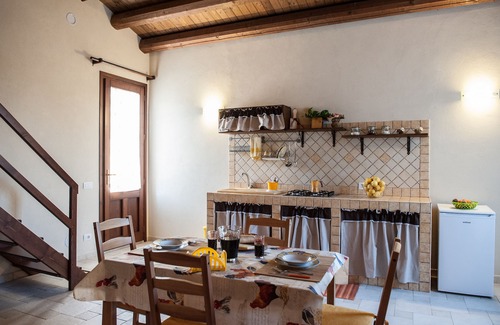 Nice 45 square meter mezzanine studio, consisting of kitchenette, dining area, living area, bathroom and double bedroom on the mezzanine. Outside a comfortable terrace, overlooking the garden and swimming pool, equipped with benches, tables and umbrella. Outside you can take advantage of a large garden of carob and olive trees. Private entrance, the accommodation is air conditioned and has free parking and wi-fi internet connection.