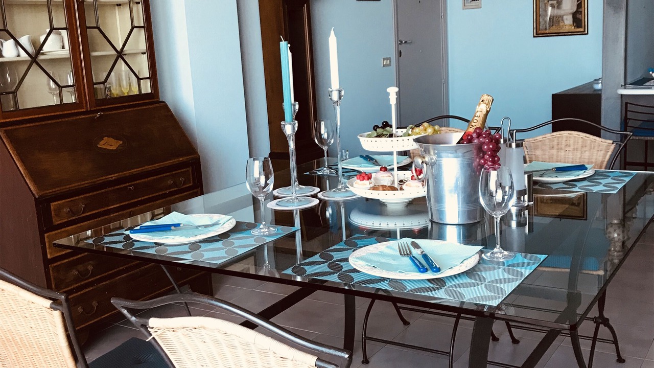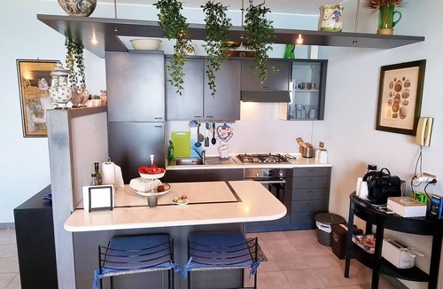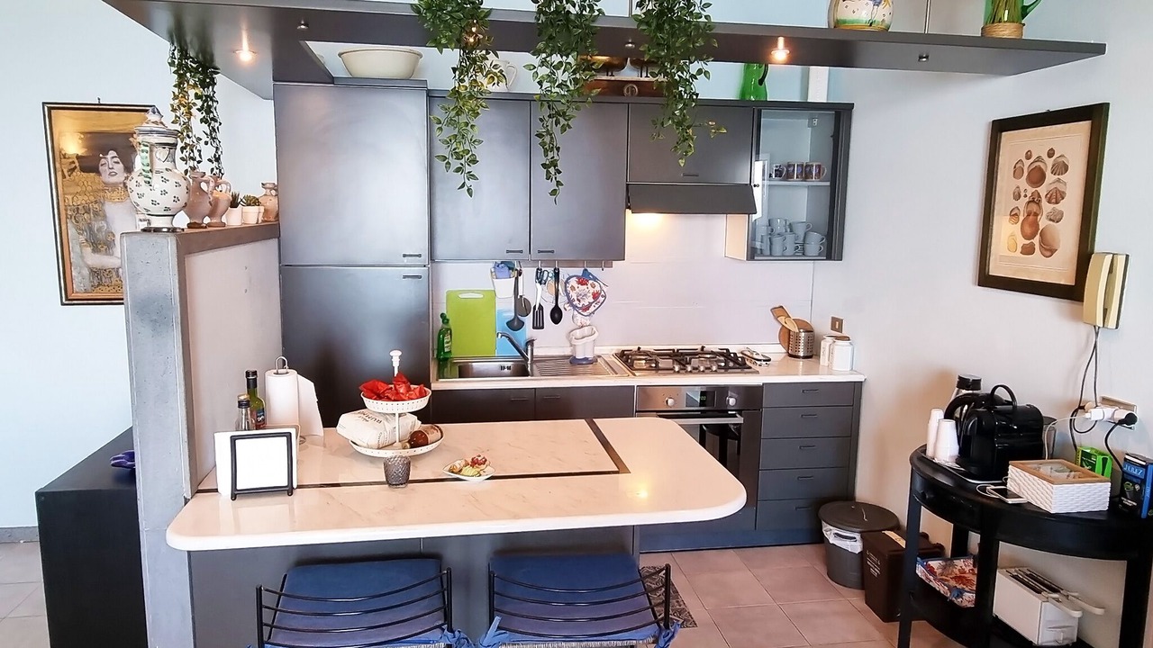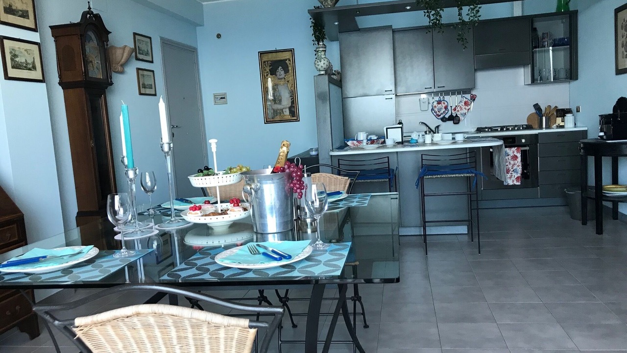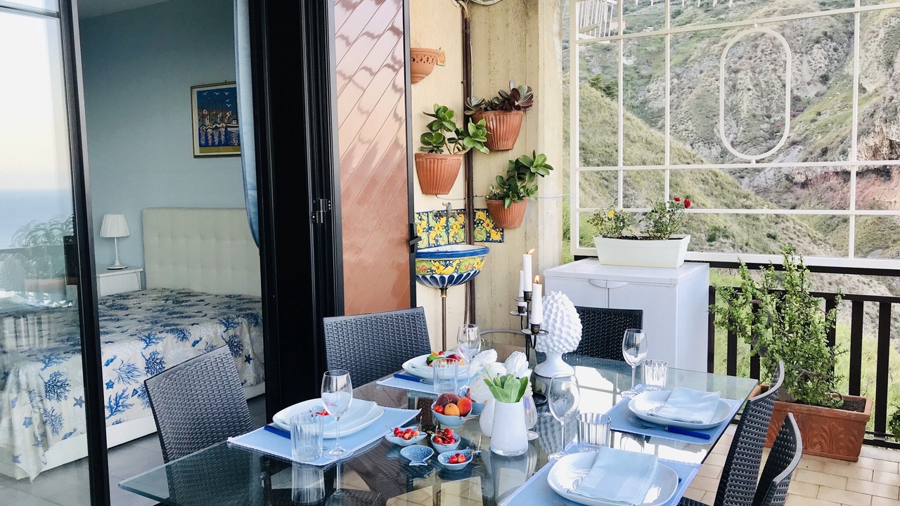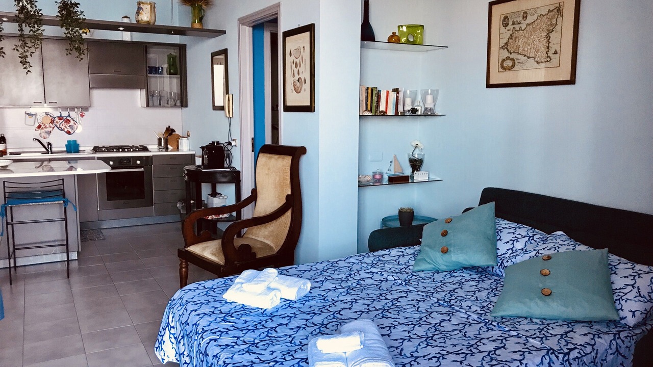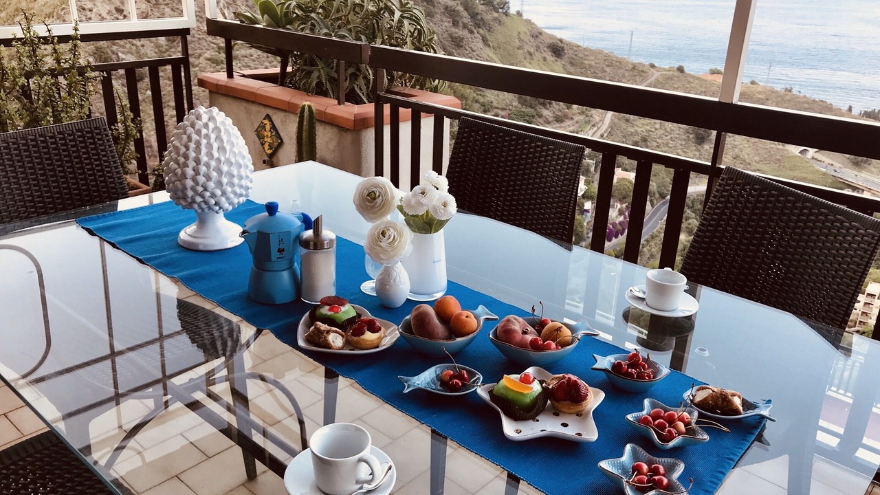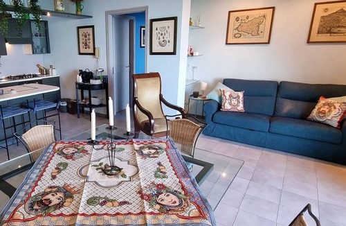 Bright two-bedroom apartment with stunning views of the bay of Mazzaró, Capo S. Alessio, the Ionian coast with the picturesque medieval village Forza D'Agrò, the Calabrian coast, the Peloritani Mountains and the blue of the Ionian Sea.