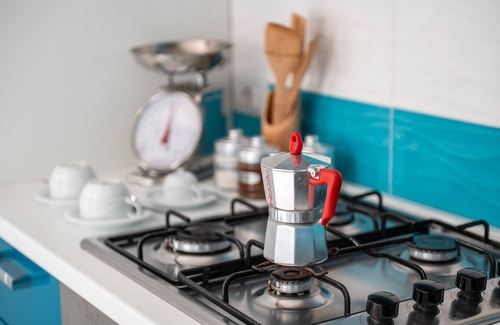 • Fully equipped kitchen with refrigerator, cookware, and balcony