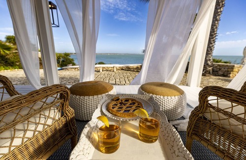 The Baia L'Aura lodgings are arranged in four carefully restored fishermen's cottages. Each one has a carefree, summery feel and a relaxed atmosphere, and together they form a private waterfront village, perfect for extended families and groups of friends traveling together. The main annex, closer to the sea, houses the common areas of the property, consisting of: a bright, airy open-plan indoor and outdoor lounge with continuous transparent walls, sea views, white floors, linen curtains that float gently in the sea breeze, a well-equipped kitchen and a dining table. A door from the kitchen opens onto a comfortably furnished living area with additional fabulous sea views and access to a shaded terrace. Next to this is the first bedroom, a double bedroom with private bathroom with shower, sea view and access to the terrace. The second structure has two double bedrooms with independent access that open onto a shaded terrace divided in two. Each offers a sea view, a bathroom with a partially internal shower and a private bathroom. The third and fourth annexes both have double bedrooms that open onto shaded terraces. One has a private bathroom with a shower, the other a bathtub and a private bathroom. NB: Although there are 5 double rooms in Baia L'Aura, the maximum occupancy is 8 people (including children over 10 years old).