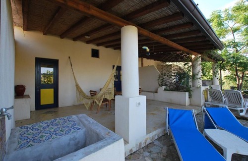 The island of Lipari in Monte, from 2016 farmhouse in the typical Aeolian style with all the rooms overlooking the patio, ideal for two couples who want to maintain privacy but be close, so divided: master bedroom with bathroom shower room, second outer chamber made into the millstone of the house, kitchen with large stove, living room with mezzanine and shower room. Large covered terrace with sea views over the bay of Lipari and the islands of Panarea and Stromboli, both solarium on the roof terrace in the garden surrounding the house.