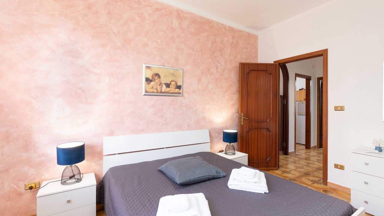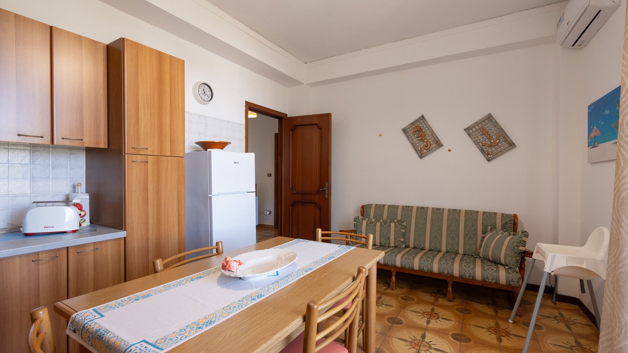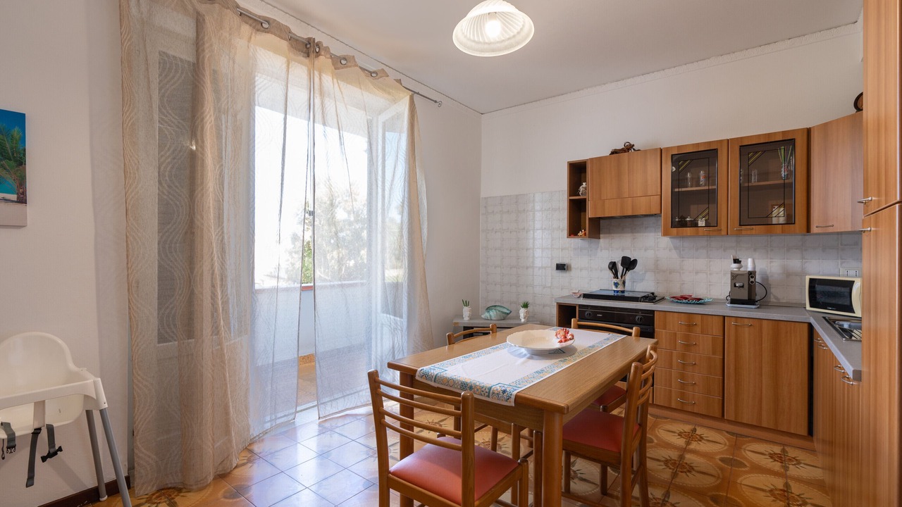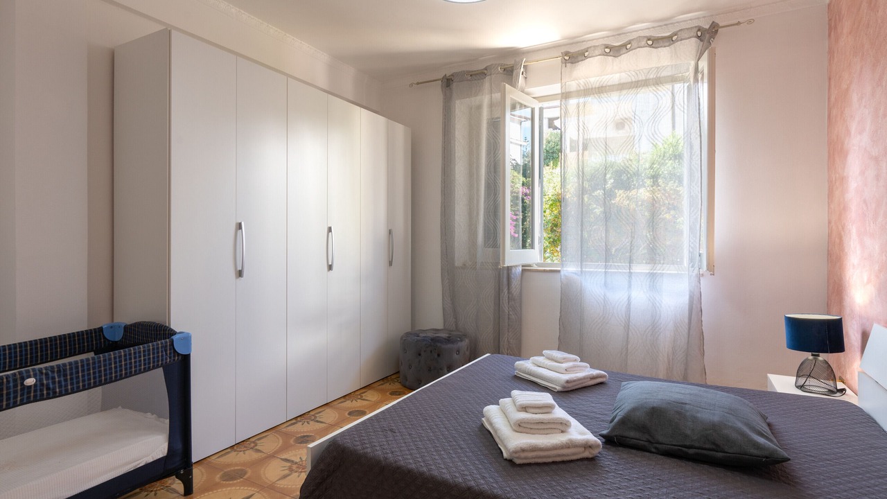 The holiday home "Conchiglia al Mare" is located in Trappeto and boasts a beautiful view of the sea. The 100 m² property consists of a living room, a fully-equipped kitchen, 3 bedrooms, and 1 bathroom and can therefore accommodate 6 people. Additional amenities include high-speed Wi-Fi (suitable for video calls), air conditioning in the kitchen, a TV, ceiling fans in the bedrooms as well as a washing machine. A baby cot is also available.