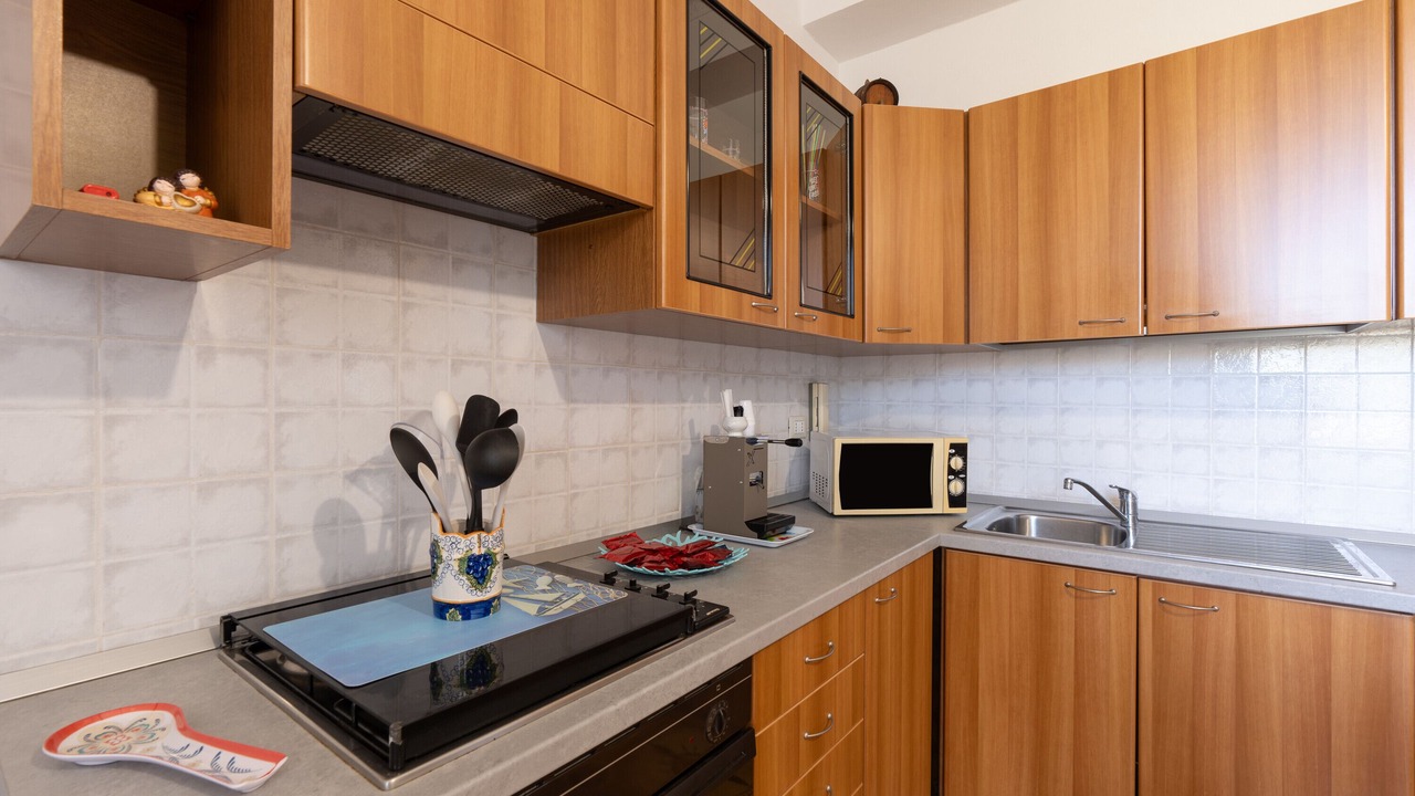 This vacation rental features a private outdoor space with a balcony where you can enjoy an evening glass of wine while admiring the sea in the distance. A barbecue is also provided.