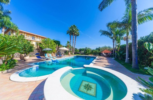 Mamma Nella is built using the renowned local lava stone which together with the tropical plants, the lawn and the Sicilian ceramics elegantly harmonize this important property.