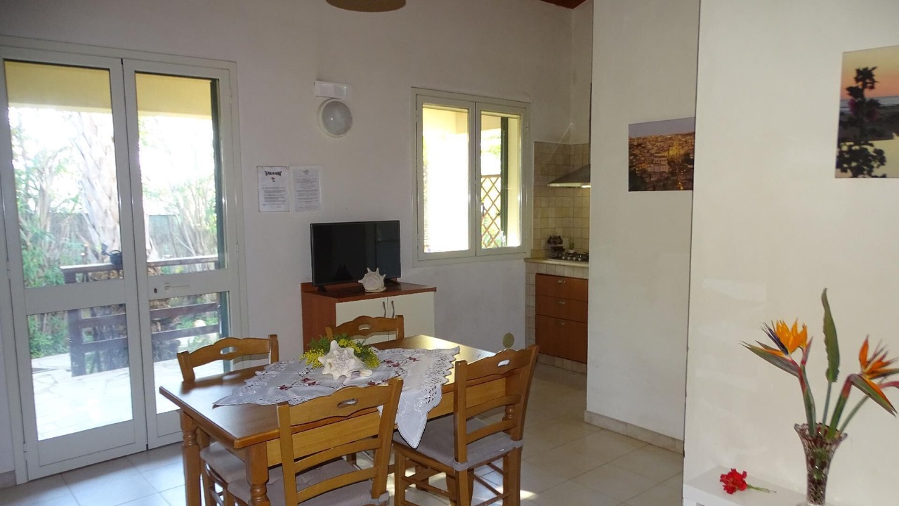 The bungalows are surrounded by typical mediterrean vegetation like beautiful oleander-, lemon-, orange- and fig trees, as well as small and big palm trees. A newly built playground and a table tennis table provide fun for the children.Baby cots, high chairs and children's beach toys are free of charge on request.To get to all the interesting cities and archaeological sites in the area we advise you to rent a car. If you wish we will get a rental for you.Please note that in the months of July and August, then when the locals go on holiday, there could be loud music till late into the night around our bungalow park, because between this period, there will be organized, dance, music and theater performances for entertainment and our quiet seaside resort comes to life.