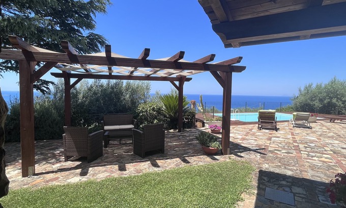 This charming Sicilian home , with breathtaking views , is located near the Madonie Park , very close to the small but nice village of Sant ' Ambrogio , and only 5km from the town of Cefalu . The house built in 2008 is close to the sea , and can be considered the perfect place for a quiet getaway in a typically Sicilian . The house is treated in detail , and each year is enriched by the owner with something new . From 2015 it also has a beautiful swimming pool located between the olive trees which enrich the outdoor space with a chic touch .