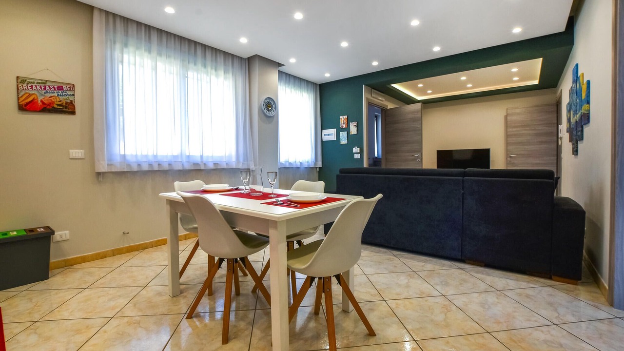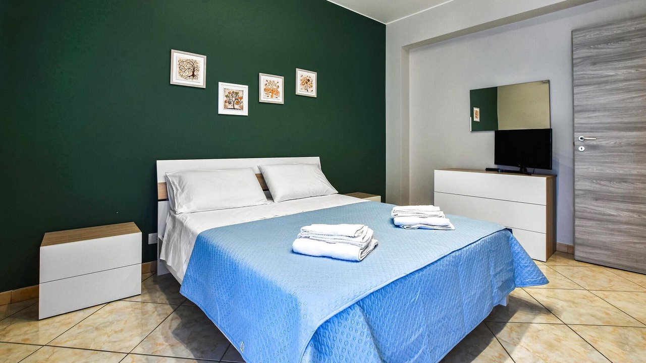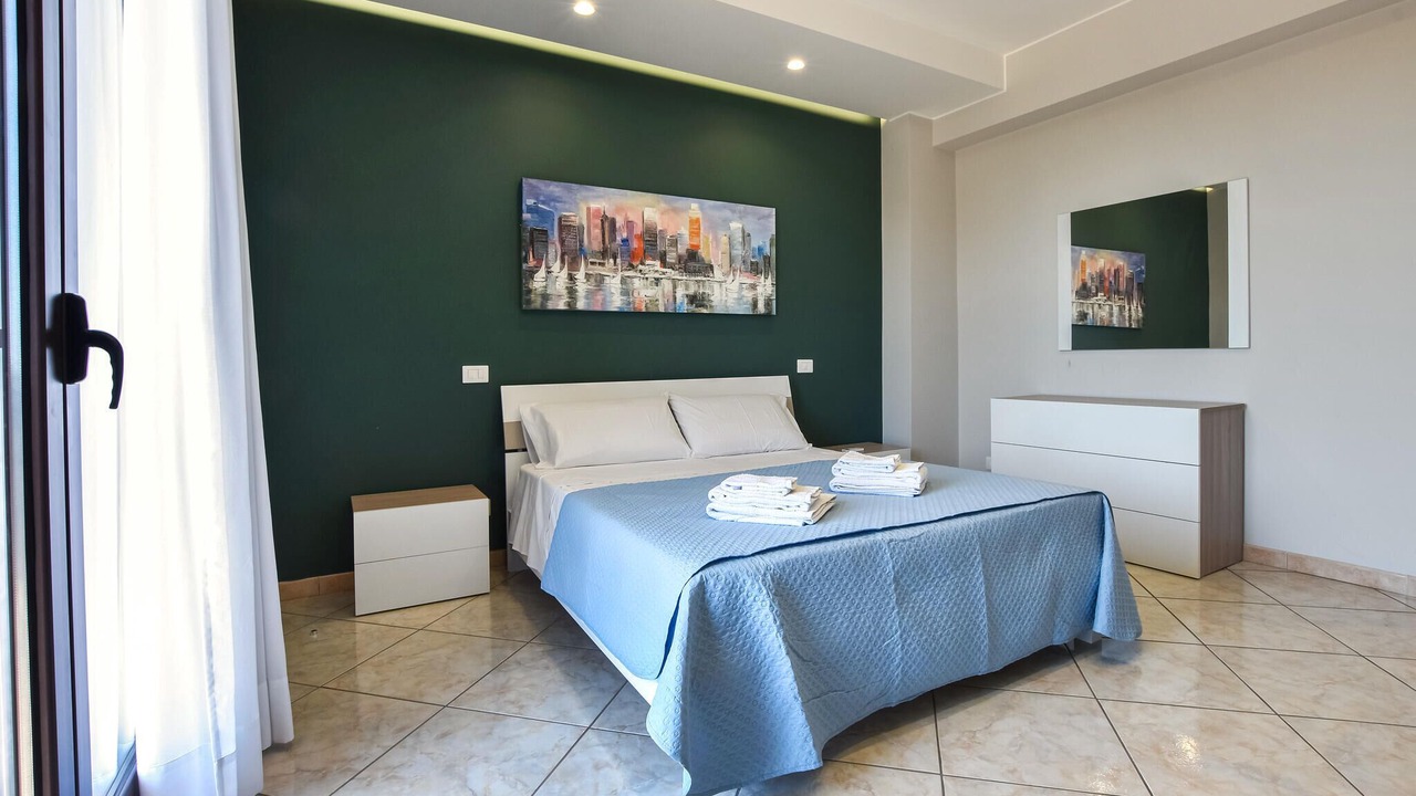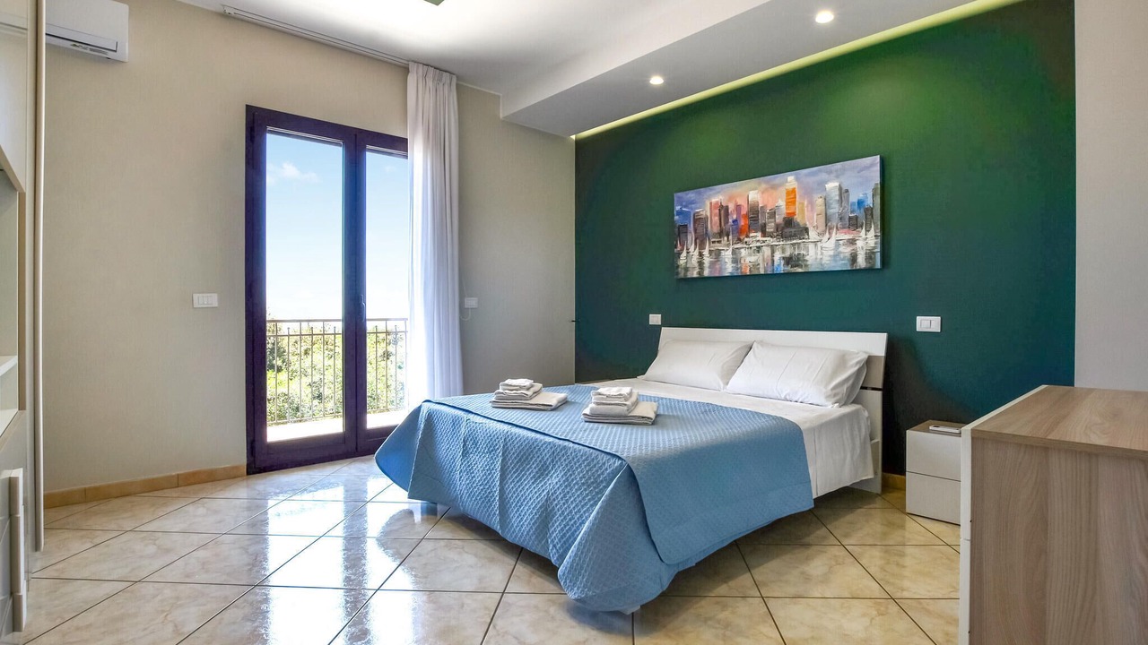 This comfortable apartment welcomes you in the midst of the beautiful Sicilian countryside. Make yourself at home with your loved ones in the cosy, modernly furnished rooms. Be enchanted by the fantastic view and spend wonderful hours outdoors. Settle down in a deckchair and interrupt your sunbathing for a few laps in the pool.