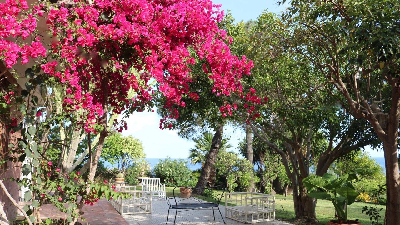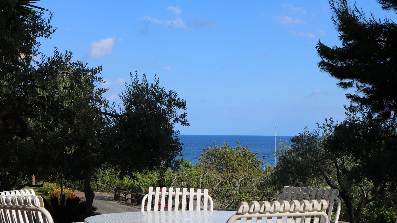 House in villa near the sea, surrounded by lush Mediterranean vegetation, large living room with equipped kitchenette and sofa bed, double bedroom, both rooms overlook a large equipped terrace, at garden level. Safety deposit box, color TV, barbecue, access suitable also for disabled people, safe and wifi. A few meters away there is a large swimming pool, a children's pool and a whirlpool, solarium, relaxation area. You can park comfortably inside the residence