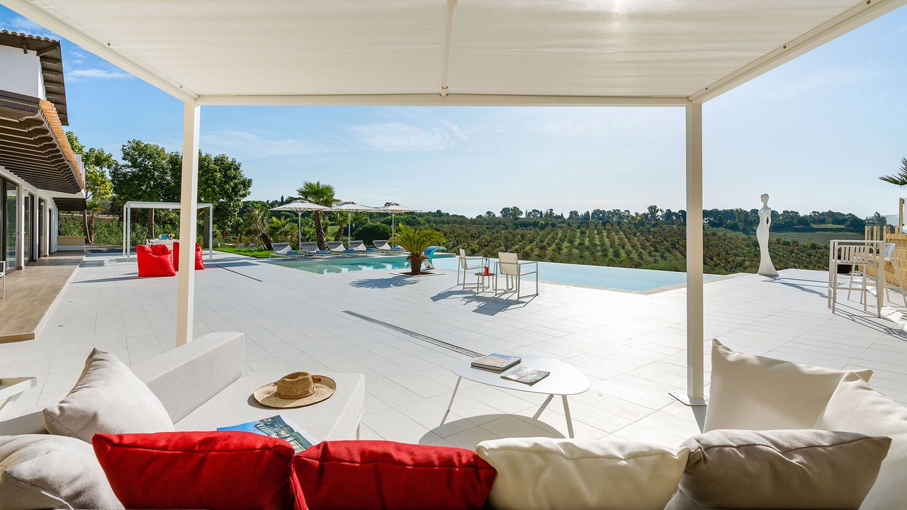 Villa Camè is an exclusive villa with private swimming pool set in a panoramic position near Ribera, well know as "the City of Oranges”, 40 km north of Agrigento. The property is surrounded by a well-kept Mediterranean garden. From its large terraces or by the infinity pool, you can enjoy in absolute relax the enchanting view of the surrounding landscape and the sea. Thanks to an accurate restyling, Camè offers welcoming interiors, spread over two levels, tastefully furnished and with all the modern comforts: air conditioning and heating, internet wi-fi, satellite TV, washing machine, dryer and dishwasher. On the ground floor there is a spacoius and bright living room, a fully equipped kitchen and two rooms with private bathroom (one of which has access from outside). On the first floor, also accessible from the outside, the third bedroom with panoramic veranda and a bathroom with shower. Camè is a strategic starting point to explore the surrounding area. From the nearby beaches of Seccagrande and Eraclea Minoa to the nature reserves Foce del Fiume Platani and Torresalsa, from the spectacular Scala dei Turchi of Realmonte to the mythical Valle dei Templi of Agrigento and again Sciacca, Selinunte, Mazara del Vallo, Marsala and Trapani.
