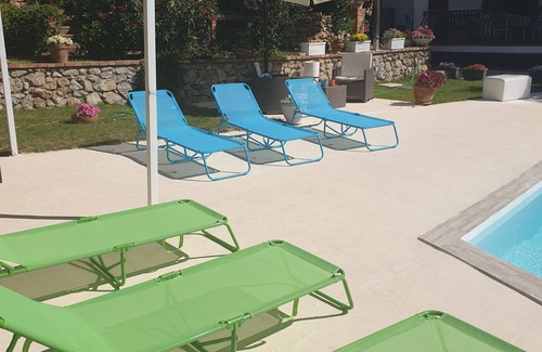 The villa has a swimming pool with outdoor areas, solarium, gazebo and barbecue.