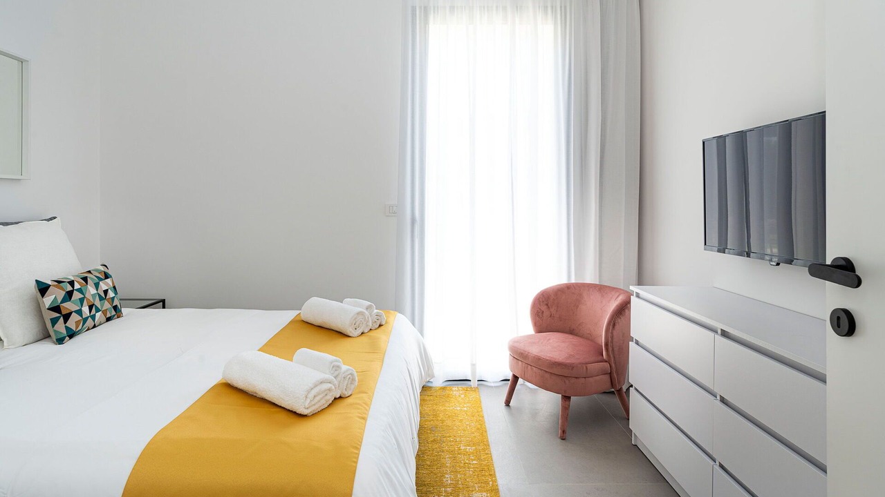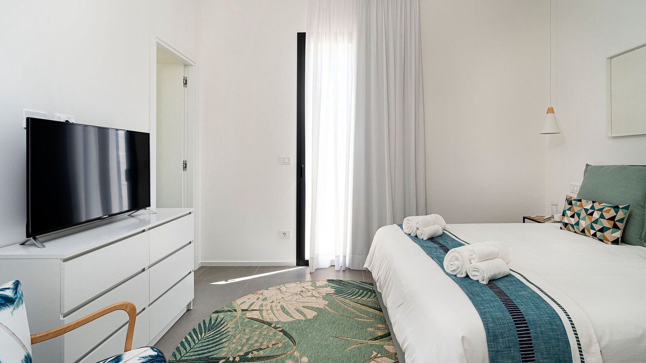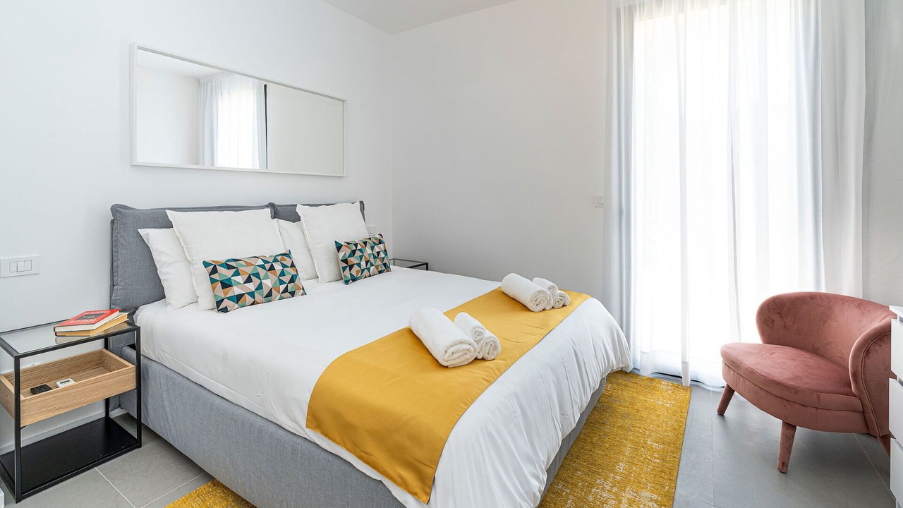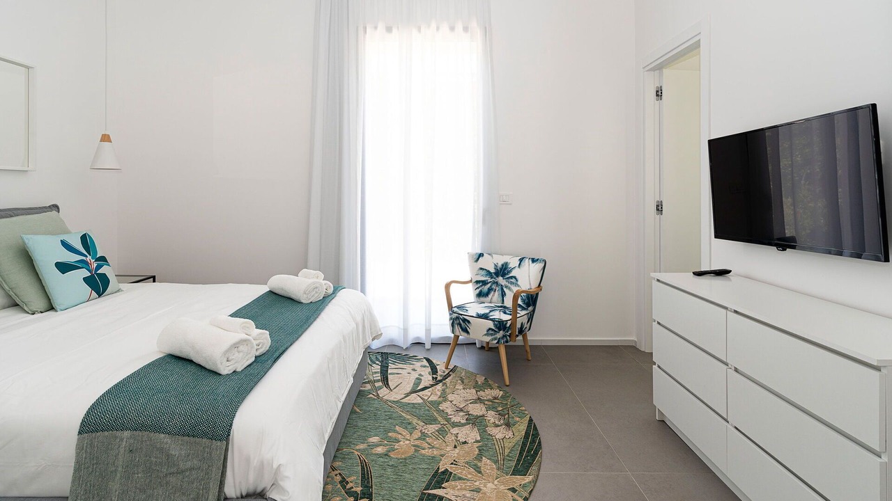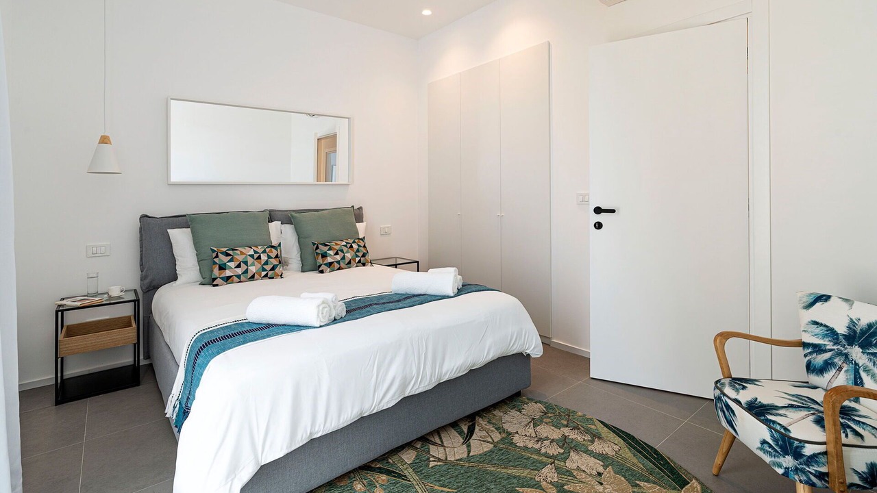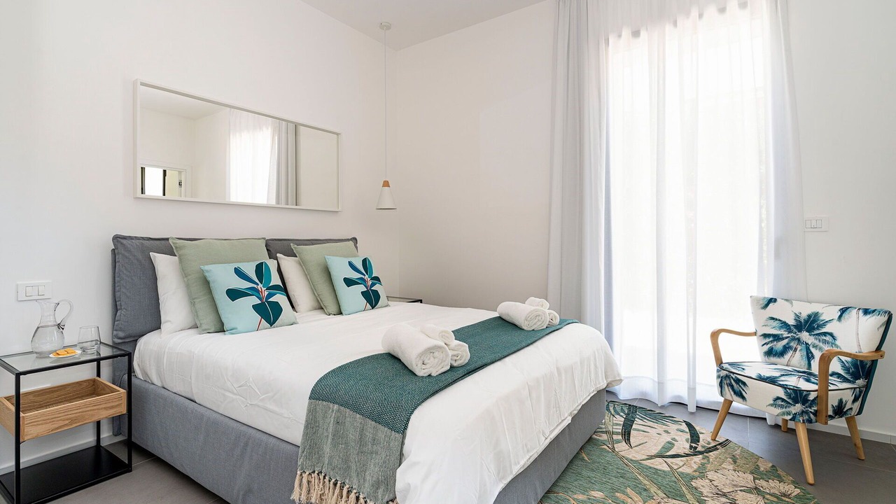 Bedroom 1: double bed (length: 200m, width: 160m), WIFI internet, internet, air conditioning, satellite tv, armchair, exit to the terrace.