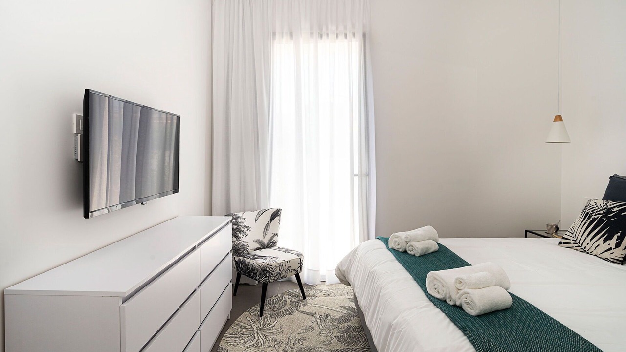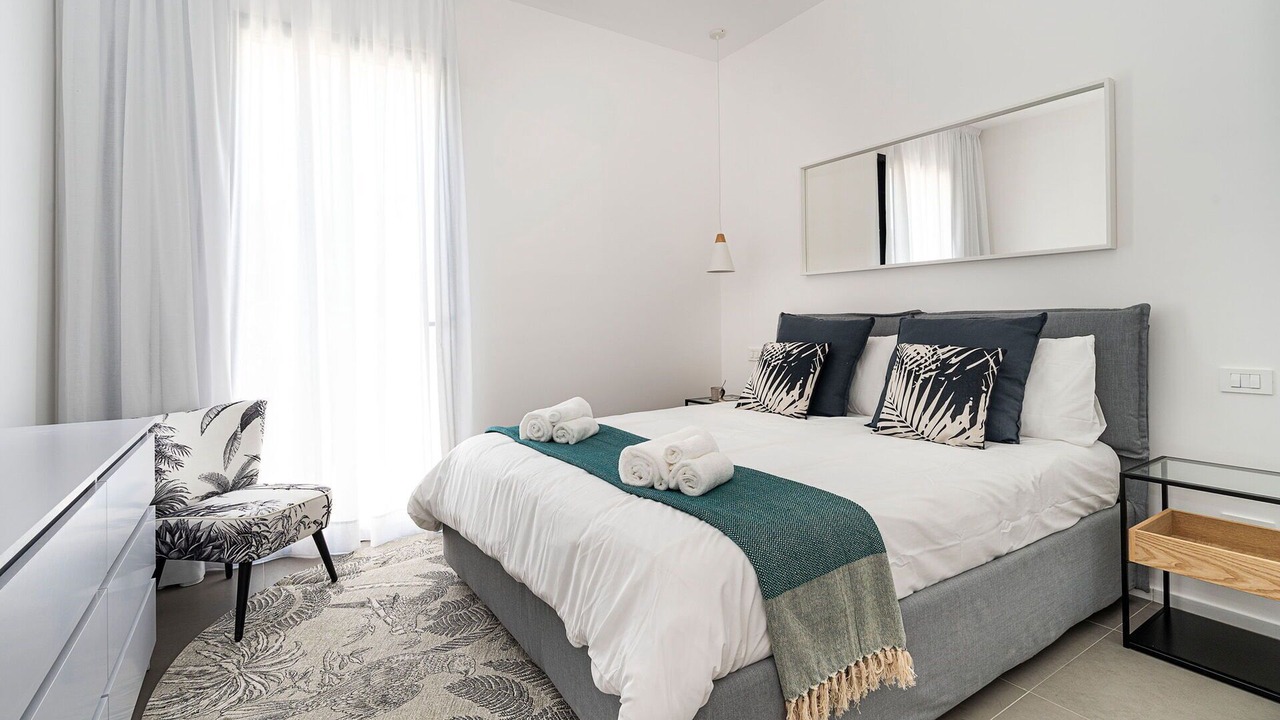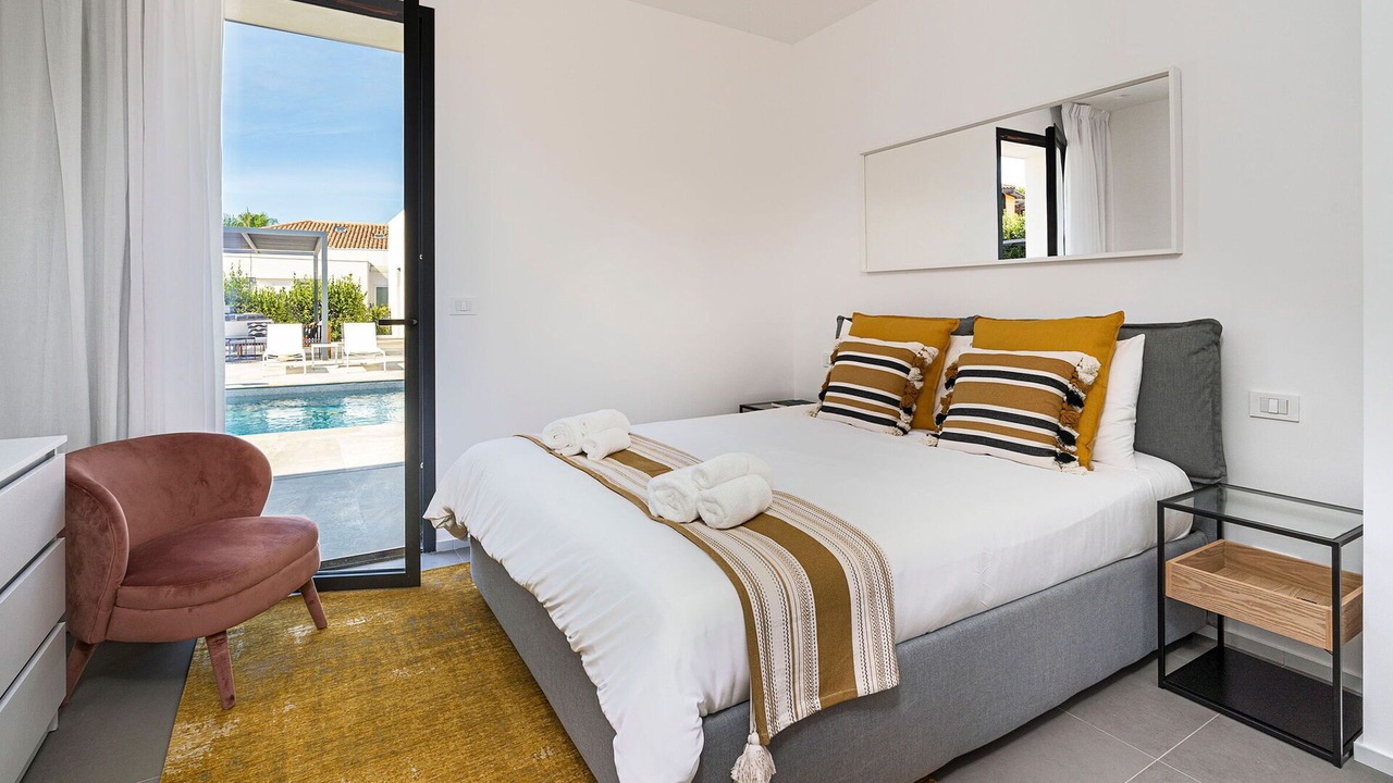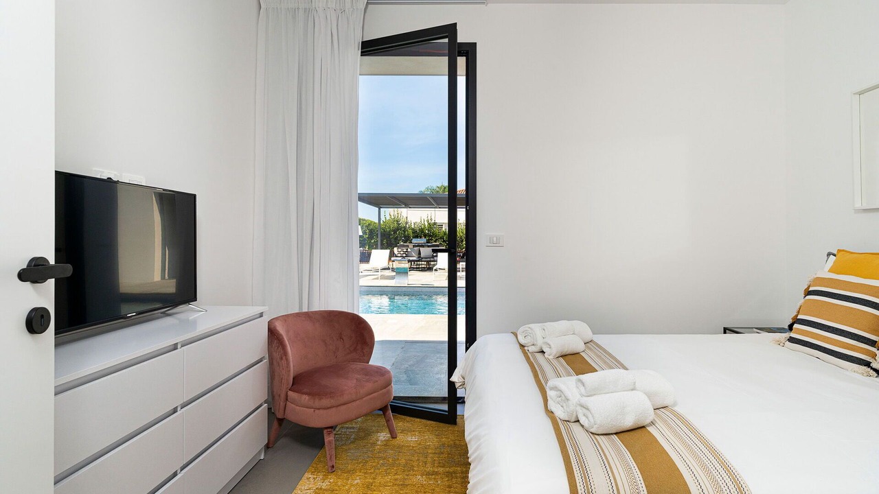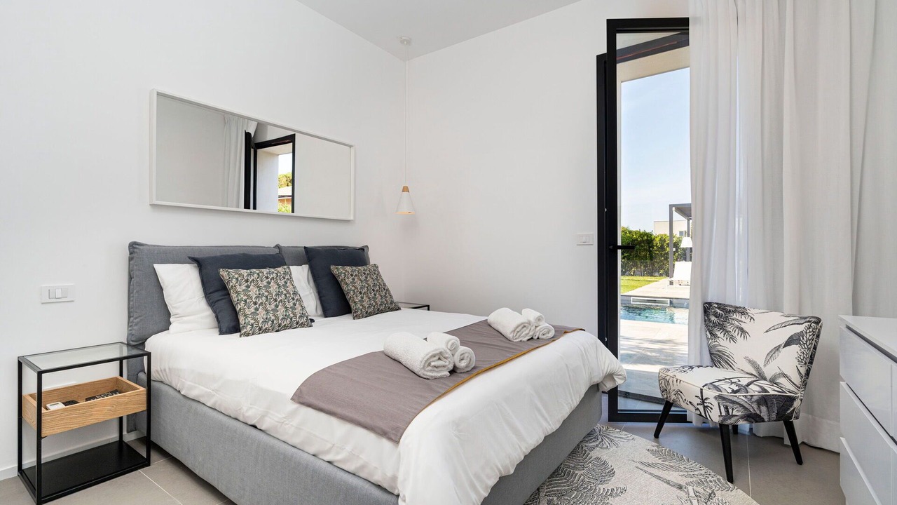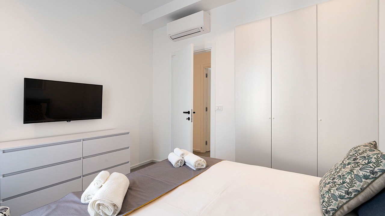 Bedroom 1: double bed (length: 200m, width: 160m), WIFI internet, internet, air conditioning, satellite tv, armchair, exit to the terrace.
