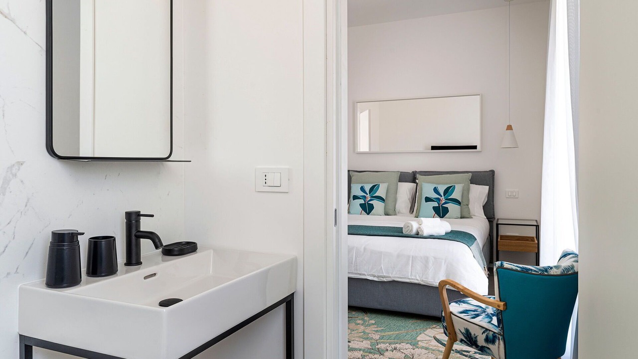 Bedroom + Ensuite Bathroom: double bed (length: 200m, width: 160m), baby crib, WIFI internet, internet, air conditioning, satellite tv, armchair, basin, toilet, bidet, shower, hairdryer, exit to the terrace.